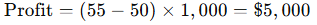 If the price of crude oil rises by $5 to $55 per barrel, the trader makes a profit of: